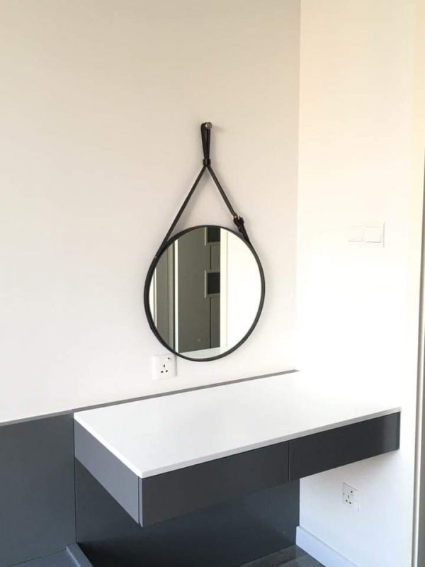 • Viền gương được làm từ da bò bền bỉ với độ ẩm cao trong phòng tắm
